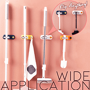 This holder provides gripper & hook for hanging rods & fabrics! Gripper automatically grips mop/broom by just one-push! The hook can hang towels, aprons, clothes & more!
