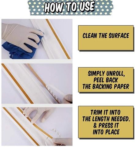 These self-adhesive tapes are used for a gap of any tiles. It's waterproof and mold-proof that can protect your home from mold and prevent dust collect at the corner. - SELF-ADHESIVE DECORATIVE STRIP