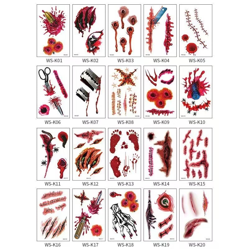 Beautiful and realistic Halloween elements temporary tattoos to create your unique personality. Great for Halloween costume parties, gatherings, cosplays, arts and crafts projects, party supplies decorations, etc. Suitable to apply on arm, face, hand, neck, shoulder or wherever you like.