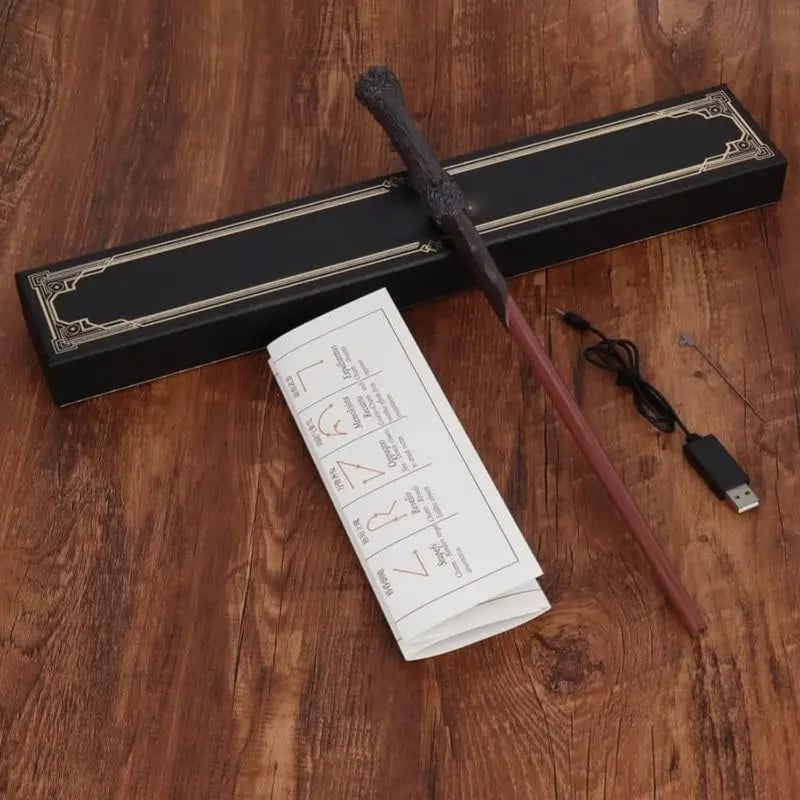 The entire magic wand is 39cm/15.35in long, which is the standard length for a magic wand. Simply press the firing button to unleash the flame magic.